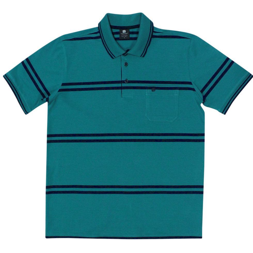 Descrição: Descubra o conforto e o estilo da Polo Comfort, confeccionada em meia malha listrada macia e flexível, 95% Algodão e 5% Elastano, esta polo oferece um toque suave e liberdade de movimentos. O design moderno na cor verde apresenta conjuntos de finas listras horizontais em tom escuro contrastante (azul marinho/preto), distribuídas pelo corpo, criando um visual clássico e atual. Conta ainda com um prático bolso na altura do peito. Detalhes especiais na gola e nos punhos, que também possuem frisos listrados, botões personalizados no peitilho adicionam um toque de exclusividade e um pequeno logo da marca bordado no peito no lado esquerdo frontal.. Perfeita para compor looks casuais e arrumados.